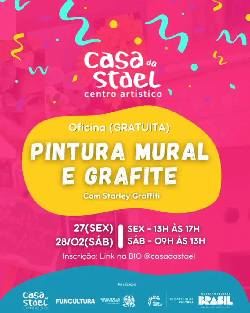 🎨✨ Carnaval passou, mas a programação na Casa da Stael continua 🎉 Dois dias para mergulhar no universo da pintura mural e do grafite na Casa da Stael!